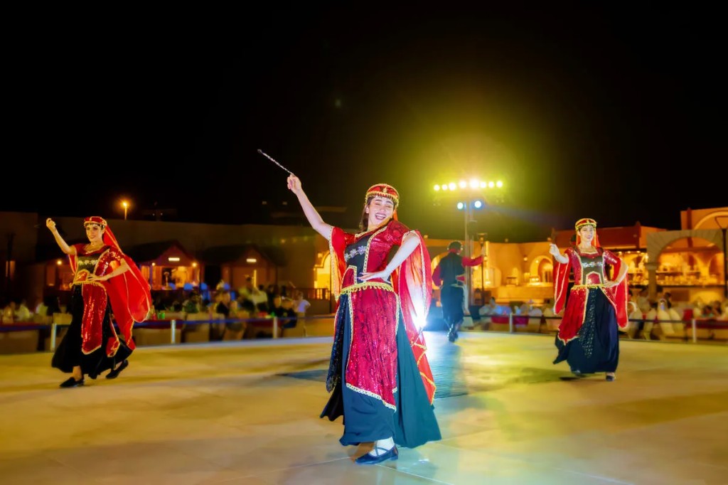 Der Abend umfasst Live-Unterhaltung und ein offenes BBQ-Abendessen vom Buffet. Während des Abendessens werden alkoholfreie Getränke serviert, die ein komplettes Wüstenerlebnis schaffen, das Aktivitäten, Essen und Aufführungen vereint.